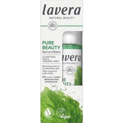 lavera Pure Beauty Serum met natuurlijk PHA en biologische munt voorziet de huid van essentiële voedingsstoffen en ondersteunt de lichaamseigen huidregeneratie. De gevoelige huid wordt gekalmeerd en onzuiverheden worden voorzichtig verminderd.