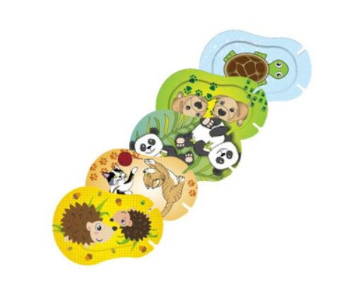 Onze oogocclusiepleisters met gemengde grote motieven voor meisjes en jongens. Oogpleisters van bamboevlies, nieuwe ergonomische vorm, inkepingen aan de neus en sterkere hypoallergene hotmeltlijm.