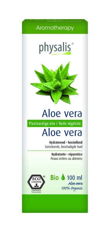Physalis bio aloe vera-olie is een erg mild lichtgeel oliemaceraat van het binnenste van Aloe vera bladeren.