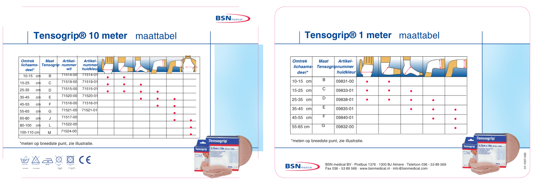 - Tensogrip B 1 m x 6.25 cm – geschikt voor smalle lichaamsdelen zoals vingers en polsen.